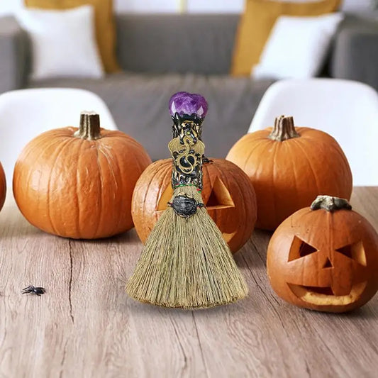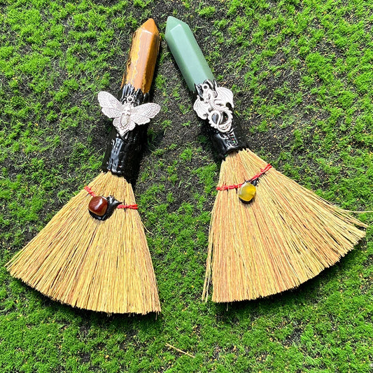 Ornement de balai de sorcière en cristal en forme de coeur, balai d'autel, artisanat de pierres précieuses, décoration de la maison