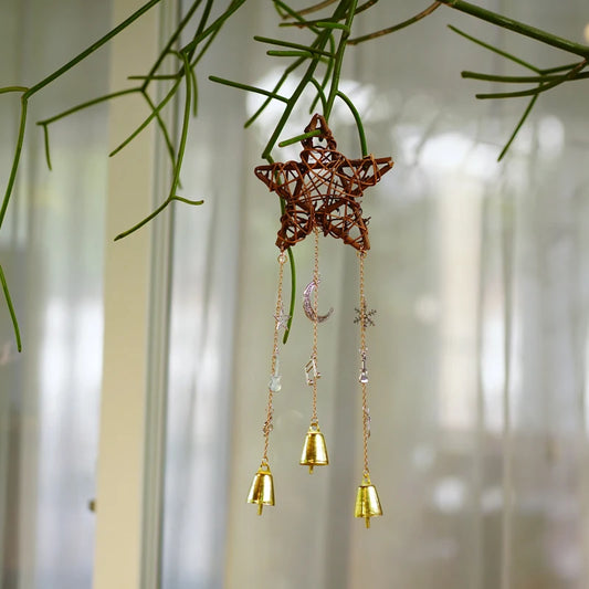 Cloche de sorcière avec protection contre le vent, étoile, lune, cercle de vigne de porte, musique, vent, tendance, jardin, arrière-cour, décoration de balcon