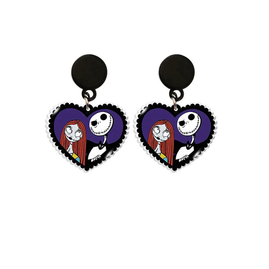 Boucles d'oreilles du film Disney The Nightmare Before Christmas, série Jack Skellington, crâne imprimé personnalisé, bijoux, accessoires, cadeau
