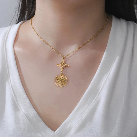 Skyrim Metatron Cube Collier pendentif noeud de sorcière Double amulette Protection Colliers en acier inoxydable Bijoux de sorcellerie vintage