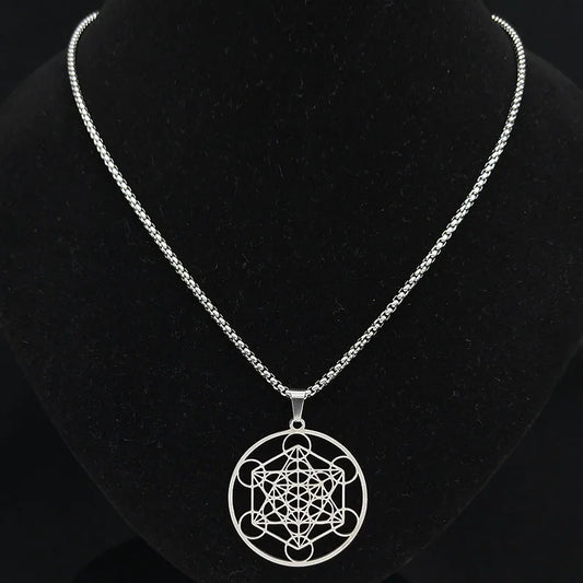 Géométrie sacrée Metatron Cube ange sceau archange collier pour femmes hommes acier inoxydable fleur de vie Lotus bijoux N7961S02