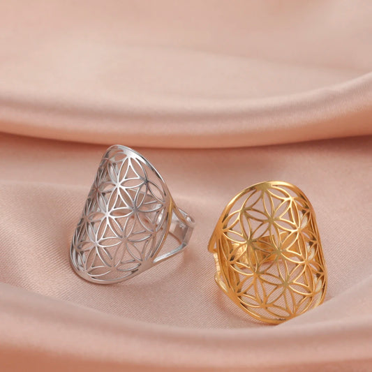 EUEAVAN – bague fleur de vie en acier inoxydable, géométrie sacrée archange Metatron, amulette réglable, bijoux cadeau, vente en gros