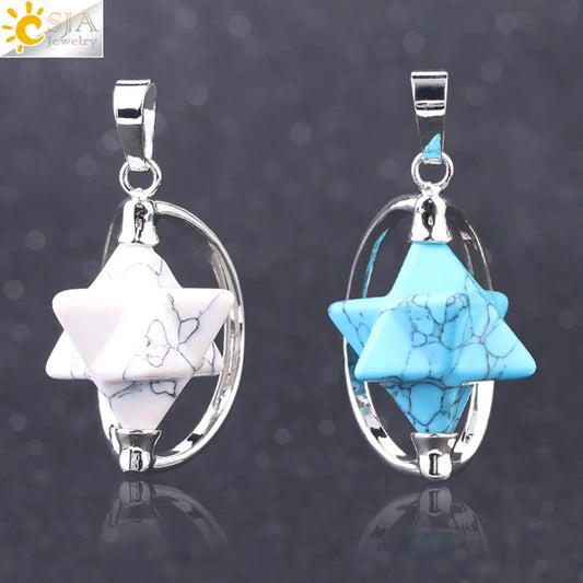 CSJA – pendentif Merkabah pour collier en pierre naturelle, cristal clair violet, guérison spirituelle, Reiki, bijoux Wicca F632