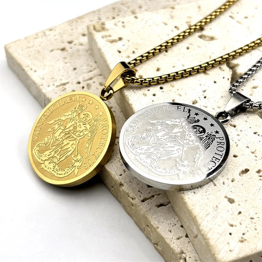 Colliers avec pendentifs Saint Michael pour femmes et hommes, en acier inoxydable, couleur or argent, amulette religieuse, chaîne, bijoux
