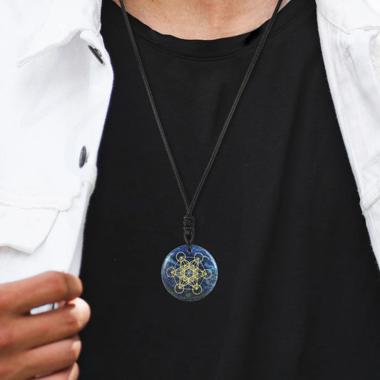 Collier en Lapis Lazuli Naturel Yantra, Pendentif Orgone Metatron Cube, Chakela Reiki Energy, Bijoux en Clip D.lique, Cadeau