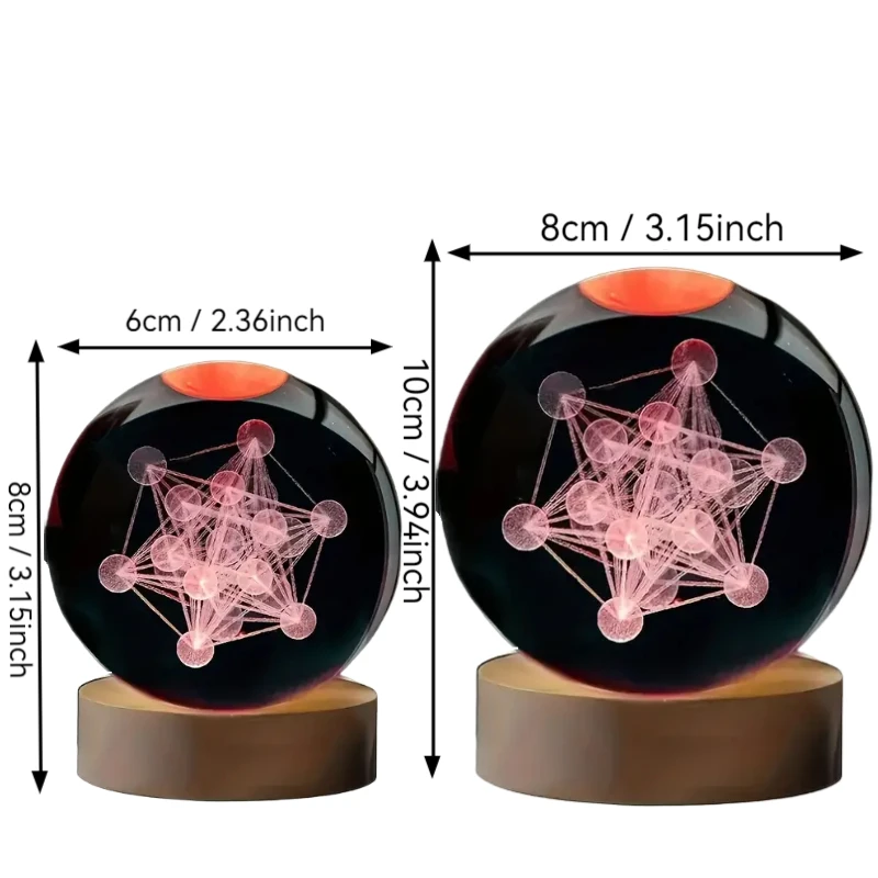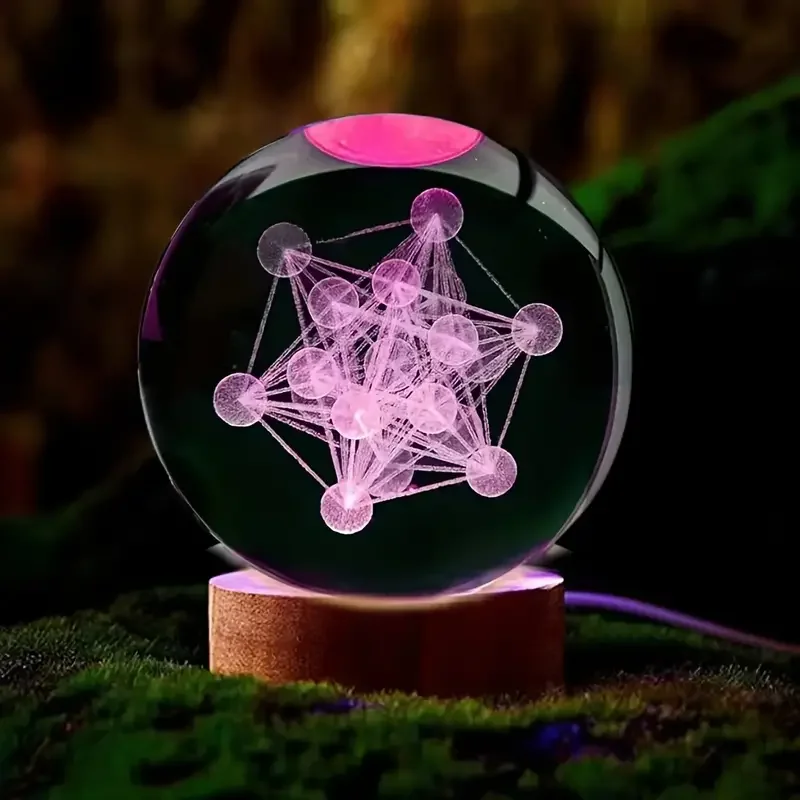 1 gravure laser 3D ‌ ‌ ‌ ‌ ‌ ‌ ‌   Metatron, veilleuse boule de cristal, décoration moderne en verre poli, Noël, Halloween, Merci