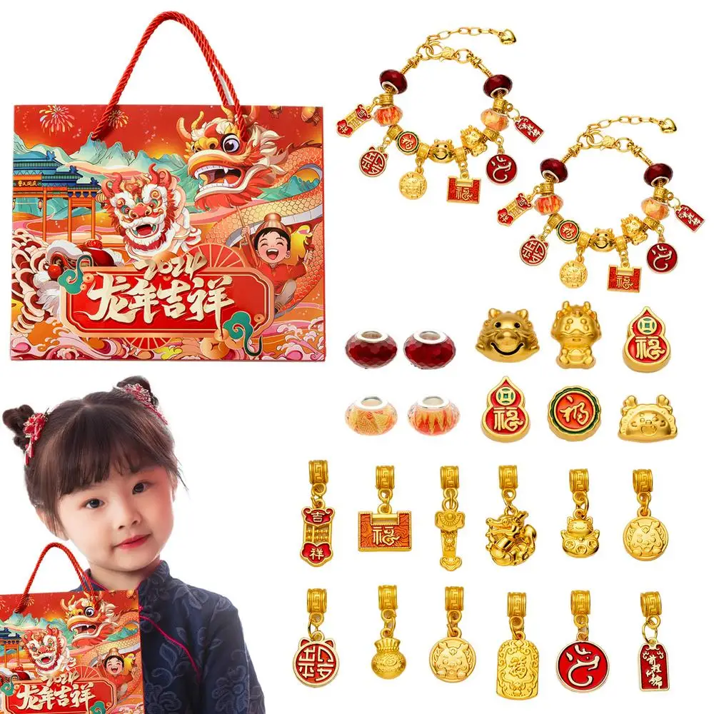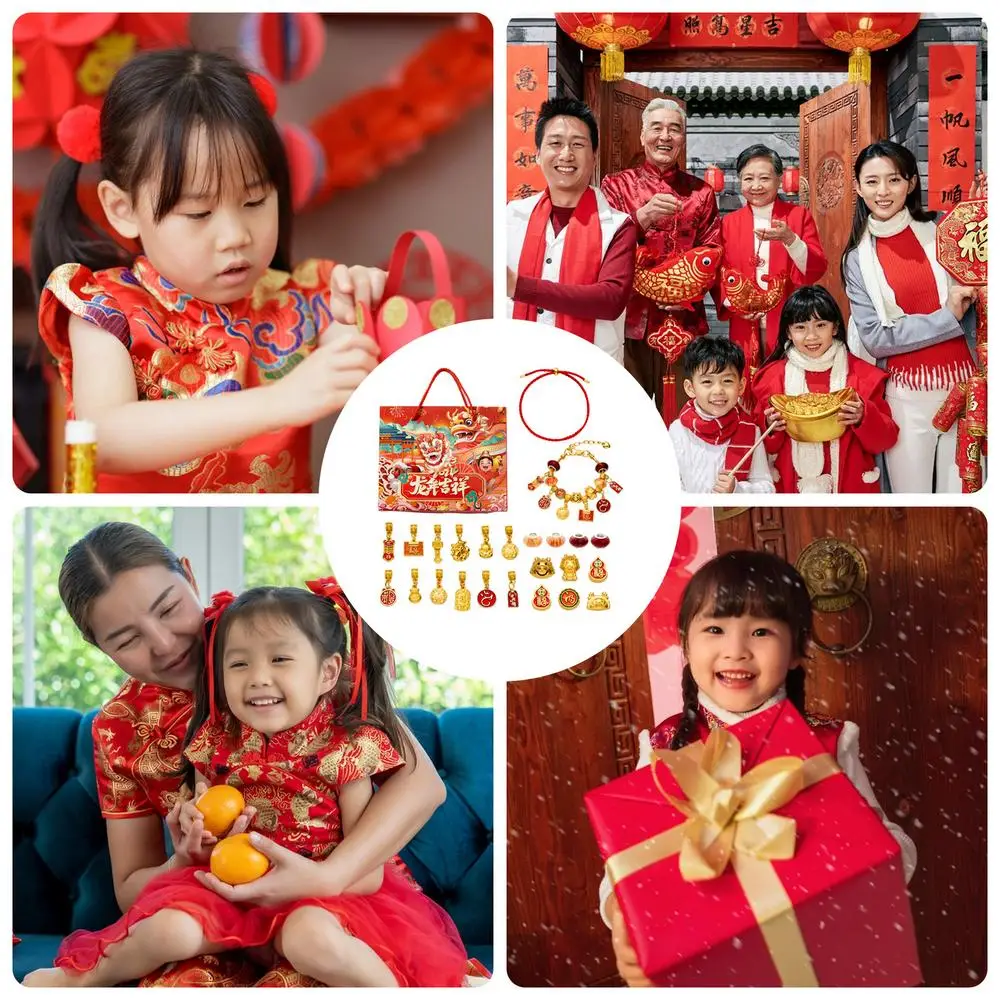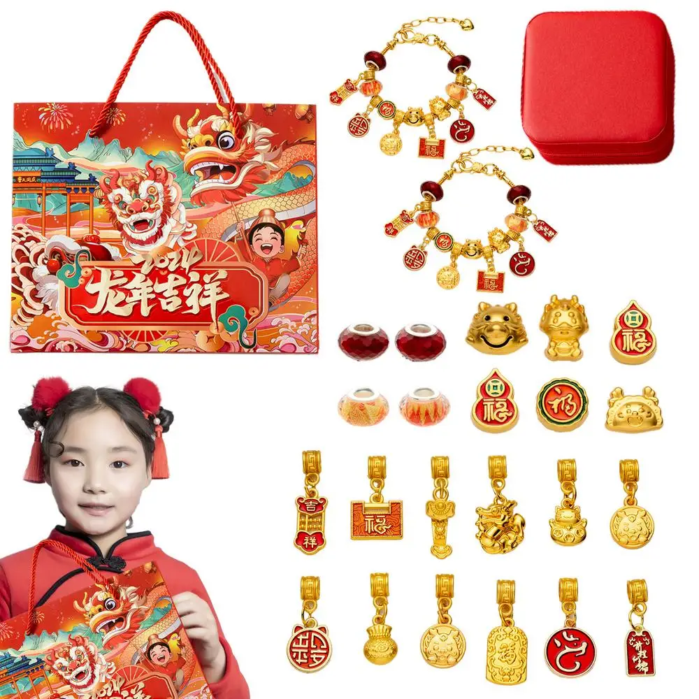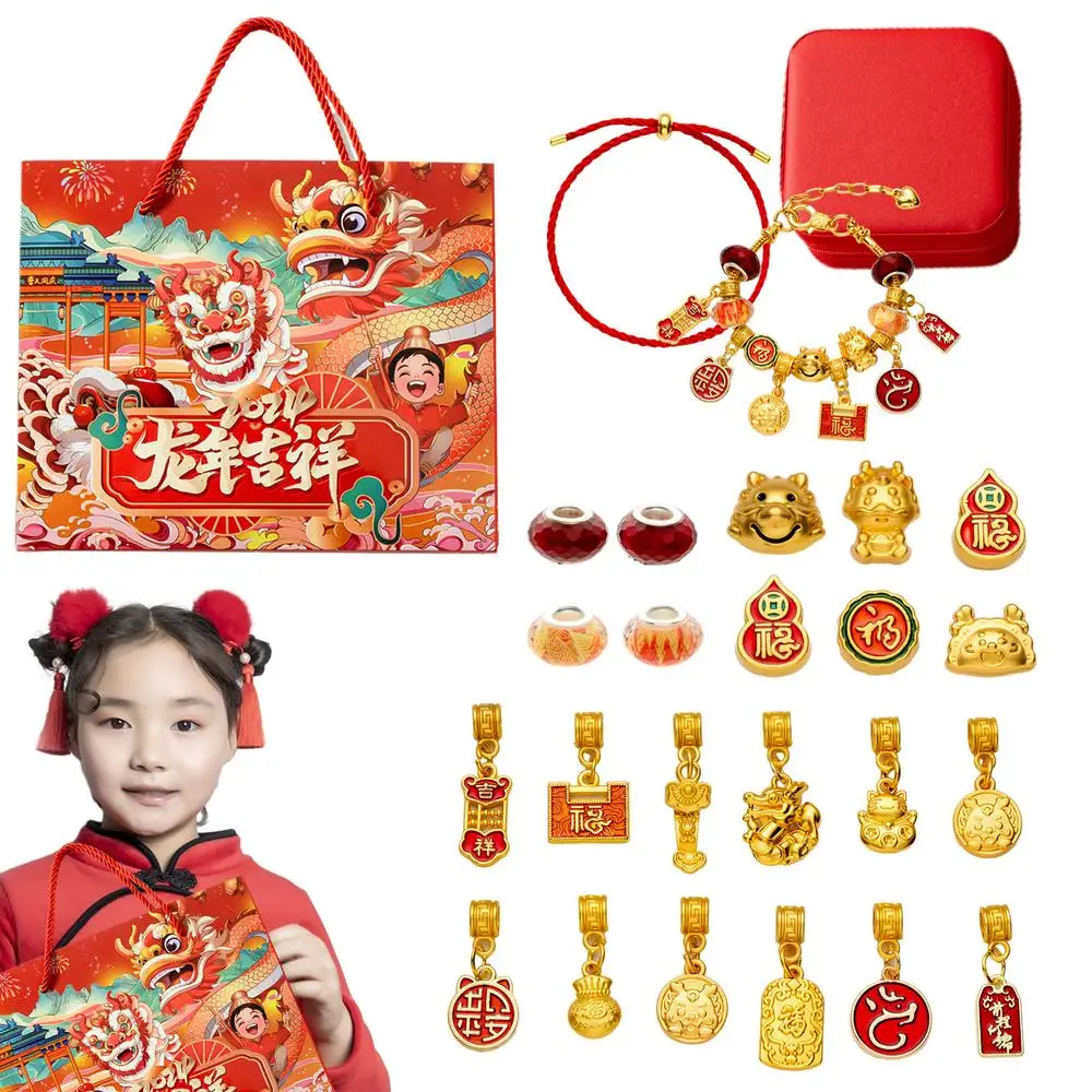 Calendrier de l'Avent du Nouvel An chinois pour filles, bijoux, bracelets à faire soi-même, compte à rebours de 24 jours, cadeaux pour enfants