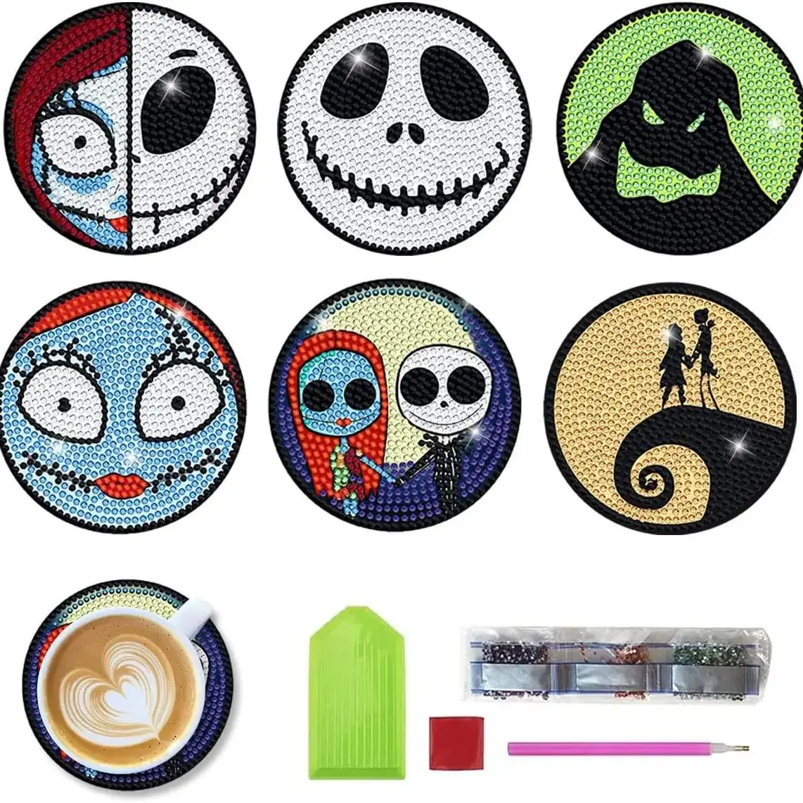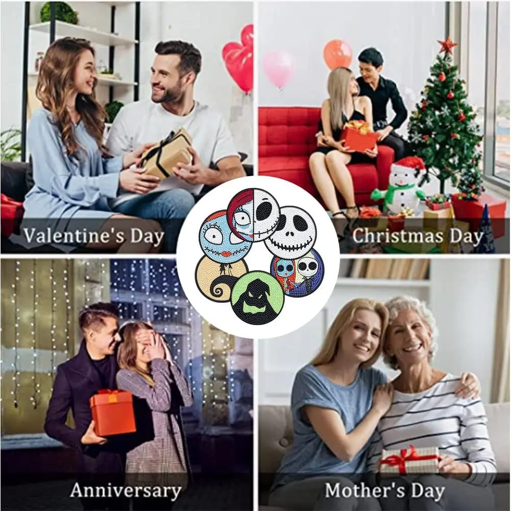 Halloween Skull Jack 6 pièces bricolage cristal paillettes diamant peint en bois Art dessous de verre avec support