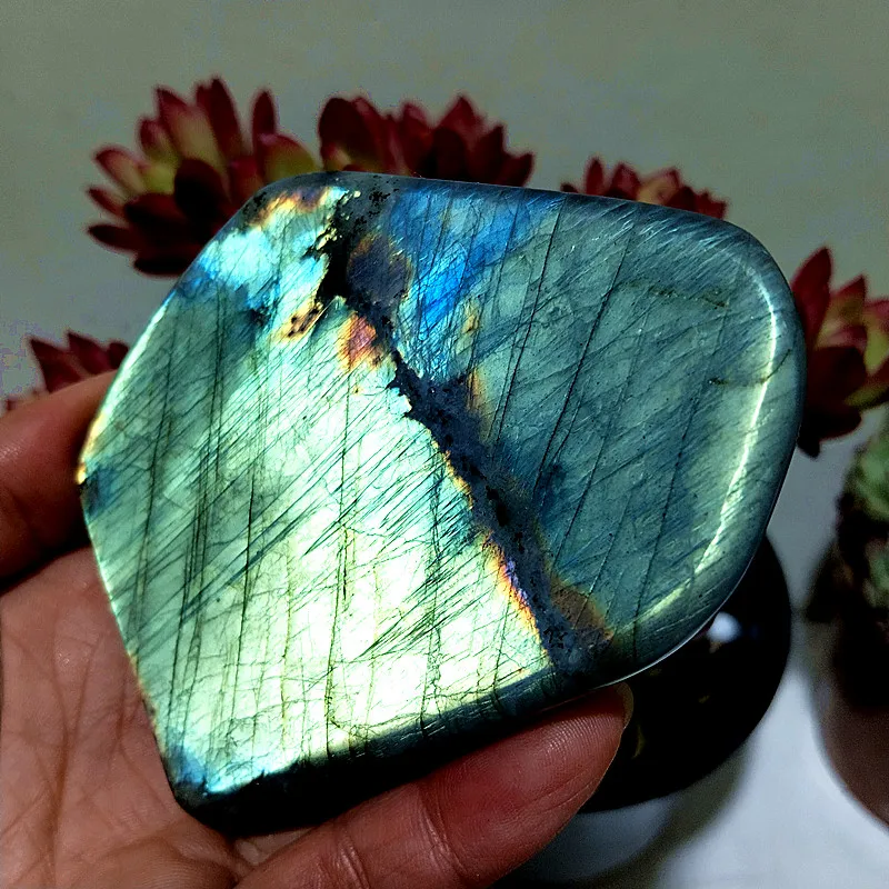 Pierre de cristal Labradorite naturelle bleue jaune, ornements de forme libre, décor de chambre Feng Shui et sorcellerie Reiki Labradorite Pierre Naturelle