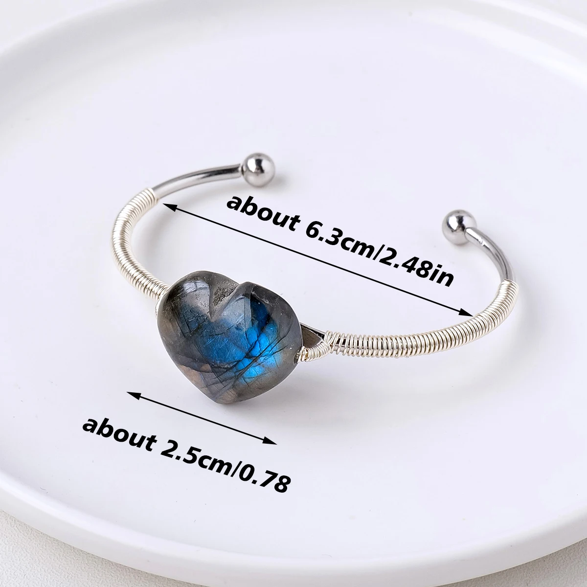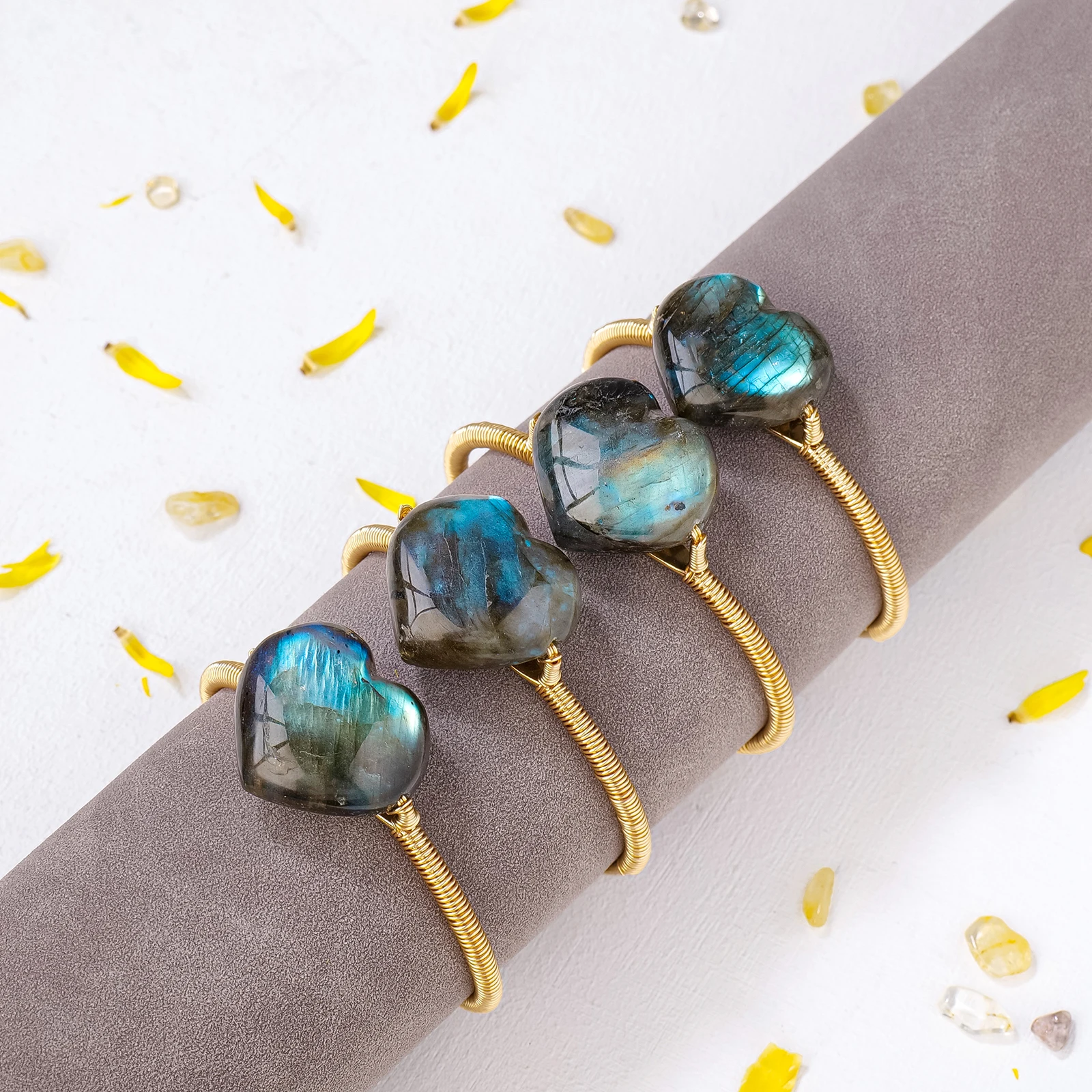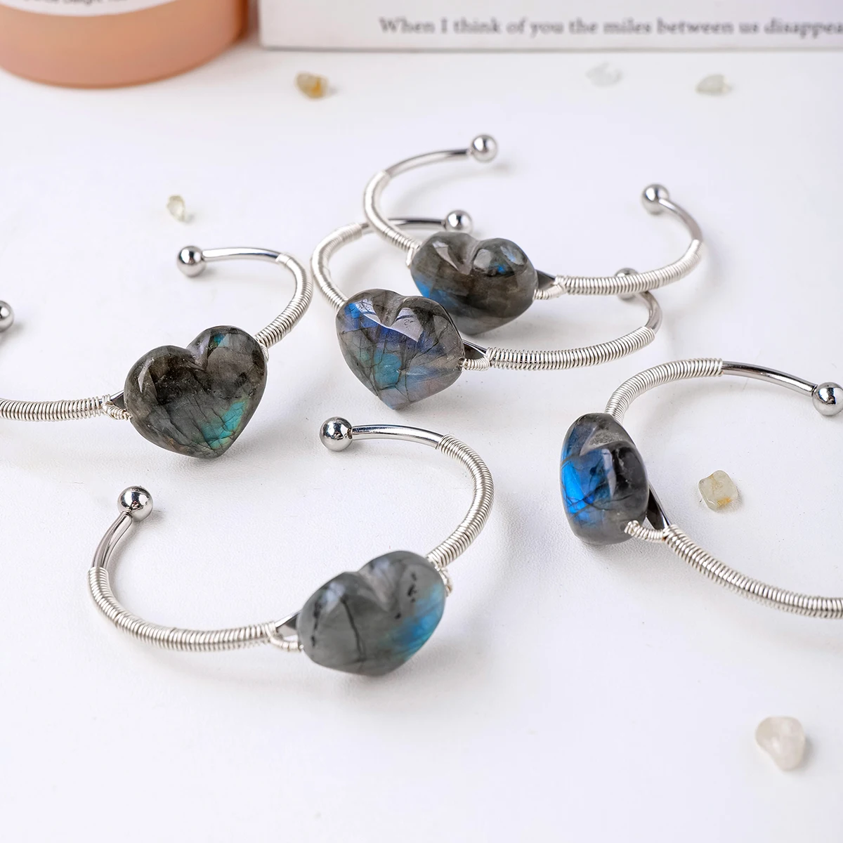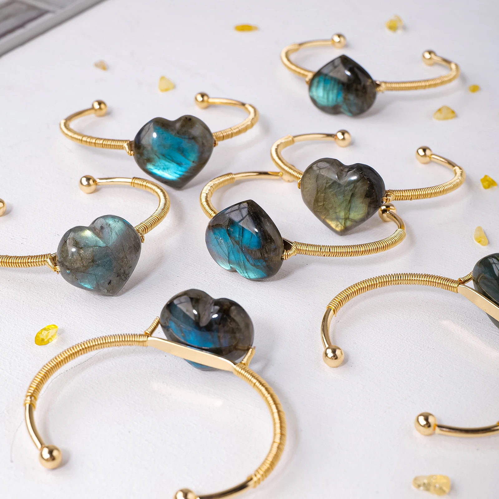 Pierre précieuse en cristal naturel, Labradorite Aura, cœur d'amour, doré, argenté, réglable, pierre énergétique, artisanat, décoration, cadeau, 1 pièce