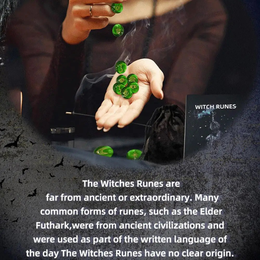 2. Kit professionnel de pierres runiques: découvrez le charme unique et mystique de l'ensemble de pierres runiques vertes. Doté de 13 runes vitrées colorées avec des sculptures complexes, un ensemble complet dans une élégante boîte d'emballage, un sac portable et un manuel détaillé
